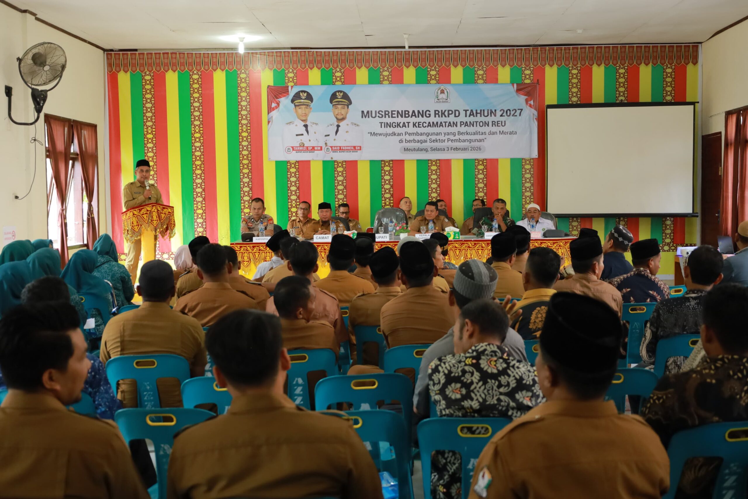 Meulaboh – Bupati Aceh Barat diwakili oleh Asisten Perekonomian dan Pembangunan Setdakab, Wistha Nowar membuka kegiatan Musrenbang RKPD Tahun 2027 Tingkat Kecamatan Panton Reu dan Kecamatan Sungai Mas di aula kecamatan setempat pada Selasa (3/2/2026).