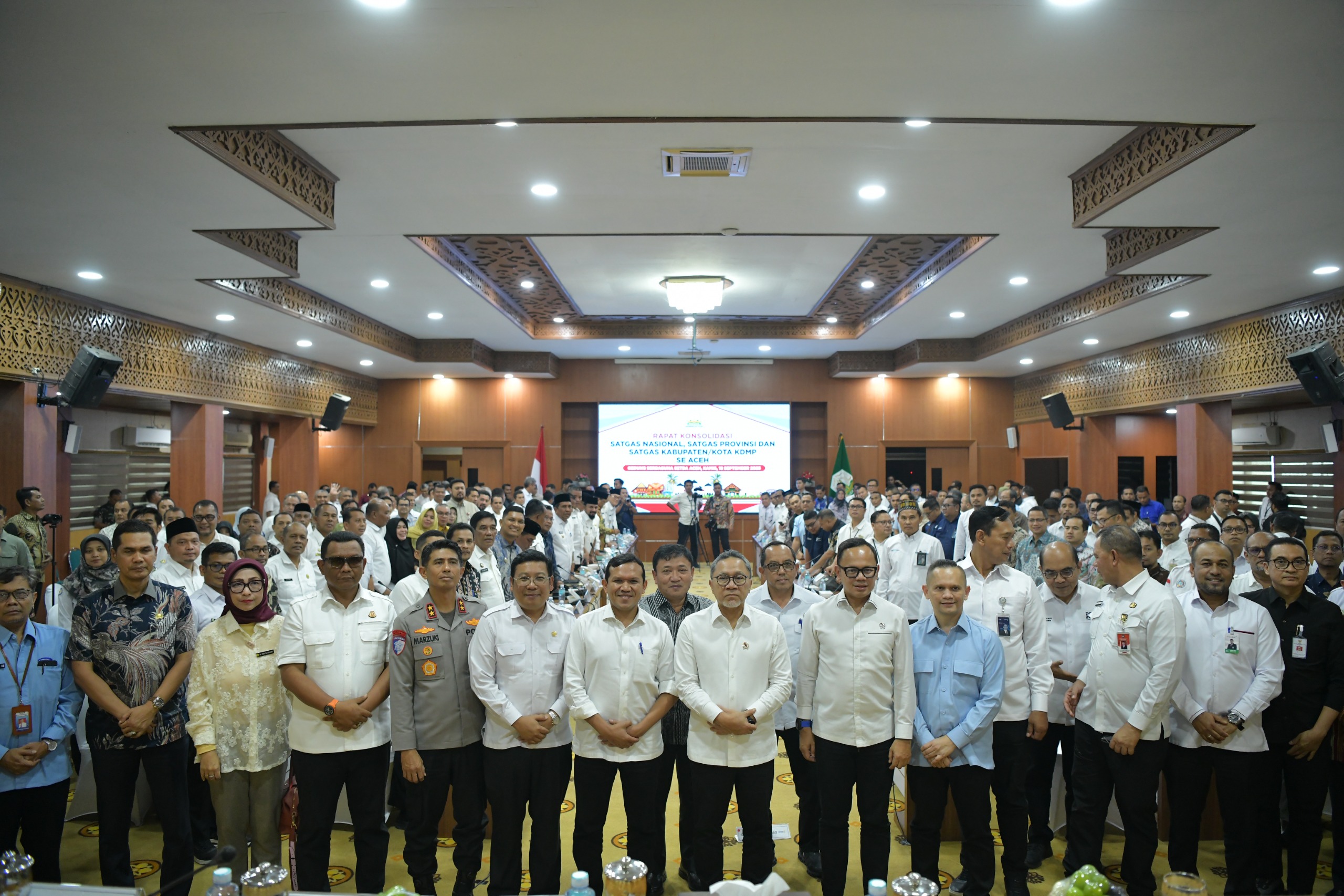 Rapat tersebut turut dihadiri Wakil Menteri Dalam Negeri Bima Arya, Kepala Badan Pangan Nasional, anggota DPR RI Nazaruddin Dekgam, Kapolda Aceh, Kajati Aceh, Sekda Aceh, para wali kota dan bupati, serta sejumlah kepala SKPA dan kepala biro di lingkungan Setda Aceh.